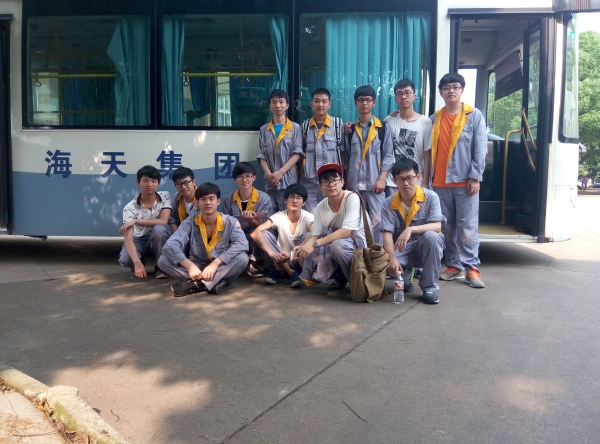 坐在班车上,大家有说有笑,阳光透过车窗玻璃洒在这群学生的脸上,青春洋溢,生气蓬勃。大巴车在海天大门口停下,他们有秩序地走进工厂,在各自岗位准备好。两三个人组成一个小组跟着师傅学习,对于基本的车床操作知识师傅都会毫不保留教给这些学生,而前往实训的学生也积极学习,向师傅询问自己不理解的问题。经过2个月的现场实践学习,海天班的同学们收获了很多,不仅仅是工作中所学到的专业知识,更多的是与人相处的学问。