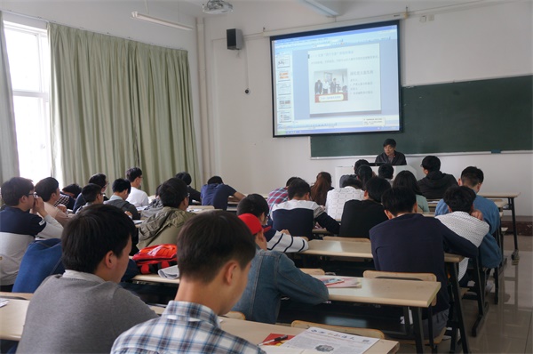 2016年4月22日12时30分,来自教工第二支部的范进桢老师于海天楼5518教室为全体入党积极分子授课,课名为“两学一做”。