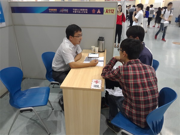 到达宁波市人才服务中心后,大二学子们纷纷带着紧张而又兴奋的心情走进了洽谈会现场,一时洽谈会现场人头攒动,热闹非凡。进入现场后一部分大二学生前往了自己心仪企业的负责人处咨询了企业近年来所需要的人才类型和进入企业的必备条件,而负责人也十分地认真向同学们介绍着企业境况。