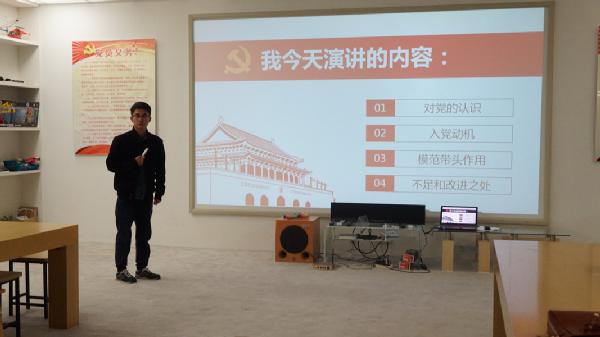 本次答辩共分两部分进行,第一环节为入党积极分子上台自我介绍,并结合PPT展示自我风采。在这一环节中,同学们都以学习、生活和思想等方面来介绍自己在入党前作为一名积极分子的状态,尤其是精神方面。同学们大都强调了自己在各大学生组织开展学生工作和课余进行志愿服务活动中努力增强自己的服务意识。第二环节为评委提问环节,此环节有助于更好的了解同学们,主要从其个人各方面包括思想、学习、工作等方面结合入党动机、党员先进性、时事政治以及党的基础理论知识提问,其中胡丽娜老师提问关于“两学一做,三会一课”以及“如何在提高自己的基础上起到领导性的作用,如何去带动其他同学”等问题,针对评委的提问,同学们也都相应的做出了精彩的回答。
