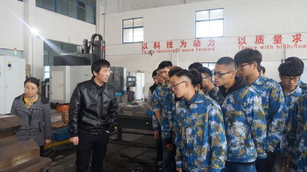 图为:“现代学徒制”班学生参观宁波吉烨汽配模具有限公司