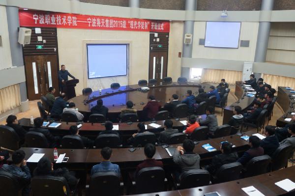 图为:宁波海天集团2015级“现代学徒制”开班仪式现场