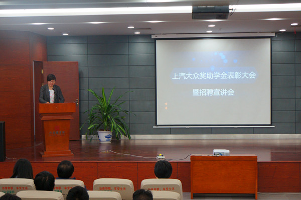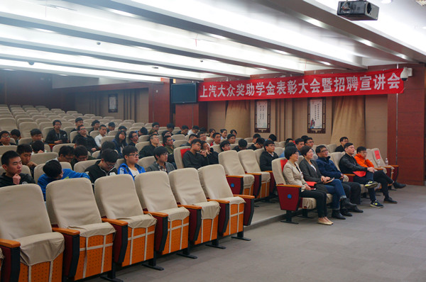 图为:上汽大众奖助金表彰大会暨招聘宣讲会现场