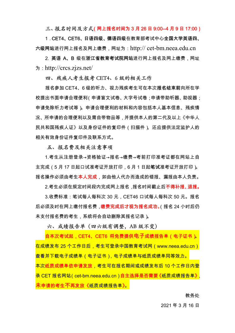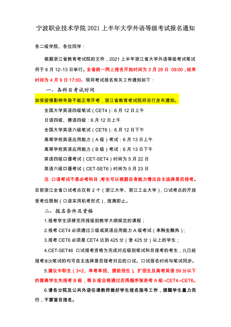 宁波职业技术学院 2021 上半年大学外语等级考试报名通知