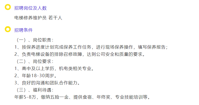 的中青年生产骨干,充分保证了电梯安装、改造、维修保养质量。公司以人为本,以科技为先导,弘扬“顽强坚韧、开拓奋进”的精神,为用户提供从产品安装直至维护保养、改造业务的一条龙优惠服务,受到用户的一致认可。