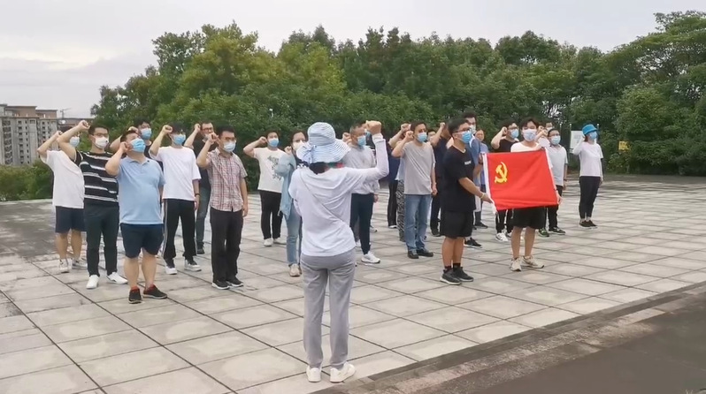 下午,大家一起来到了镇海革命烈士陵园,举行了庄重的悼念仪式。在纪念碑前,党总支书记张海英作为领誓人,带领总支党员一起高举右手,再次庄严宣誓。铿锵有力的誓词,在广场内回响,在各个党员心中荡漾,一字一句,体现了党员同志对中国共产党的无限忠诚。