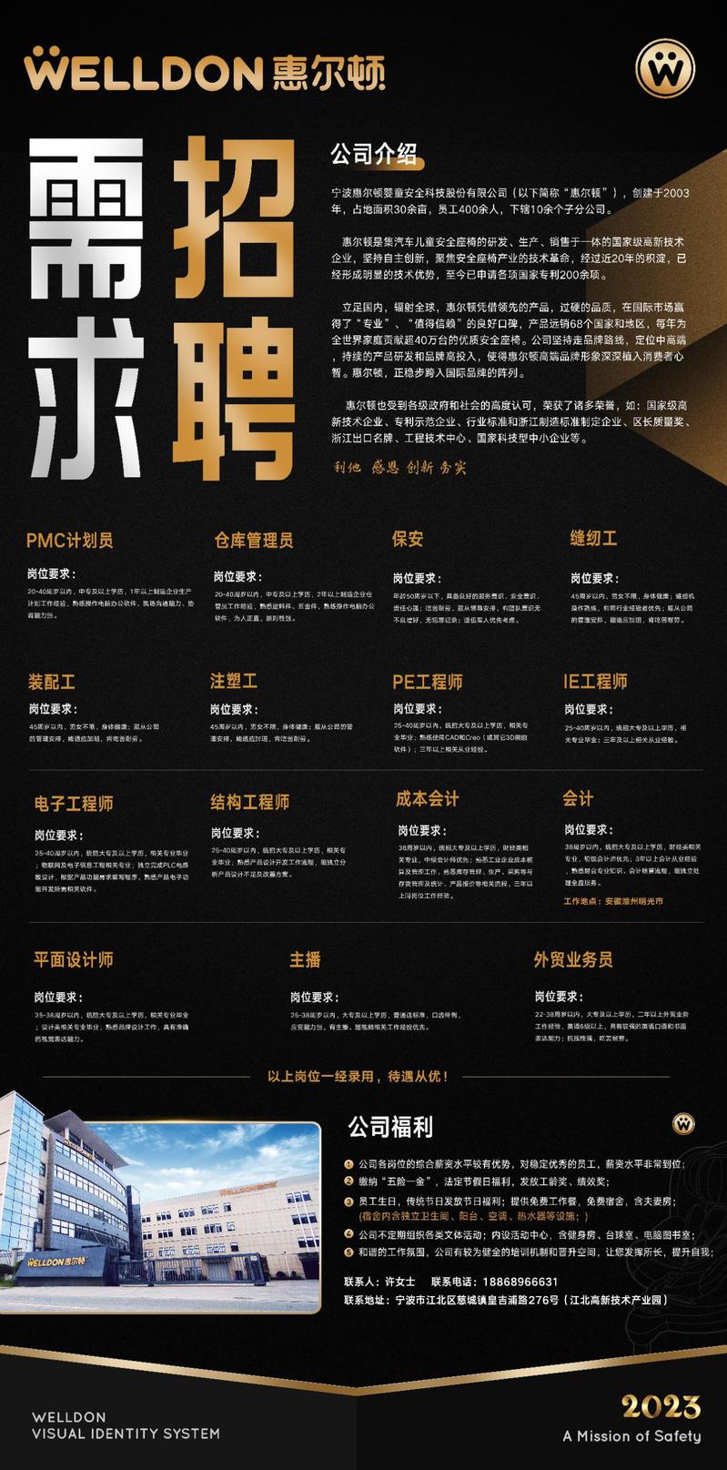 宁波惠尔顿婴童安全科技股份有限公司招聘公告