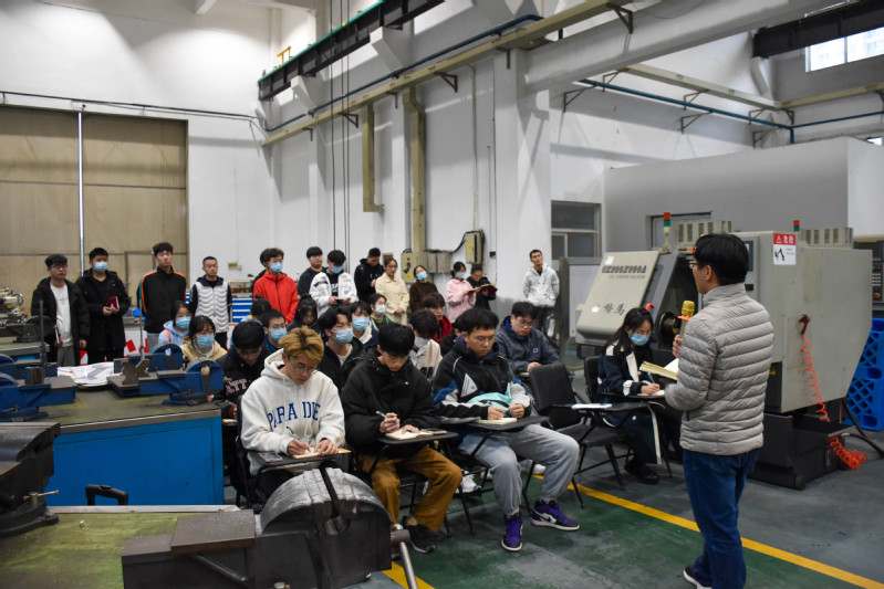 11月30日,机电工程学院(中德智能制造学院)学生党支部“博学”党小组在午休间隙走进车间,邀请分院副院长、“双带头人”教师党支部书记工作室负责人沈鑫刚老师开展“实训车间党课”。