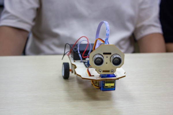 “这辆智能车不仅能够自主避障,还能通过超声波传感器精准感知周围环境,实现智能巡航!”指导老师介绍道,“神奇之处在于它能够自动识别、躲避障碍物!”