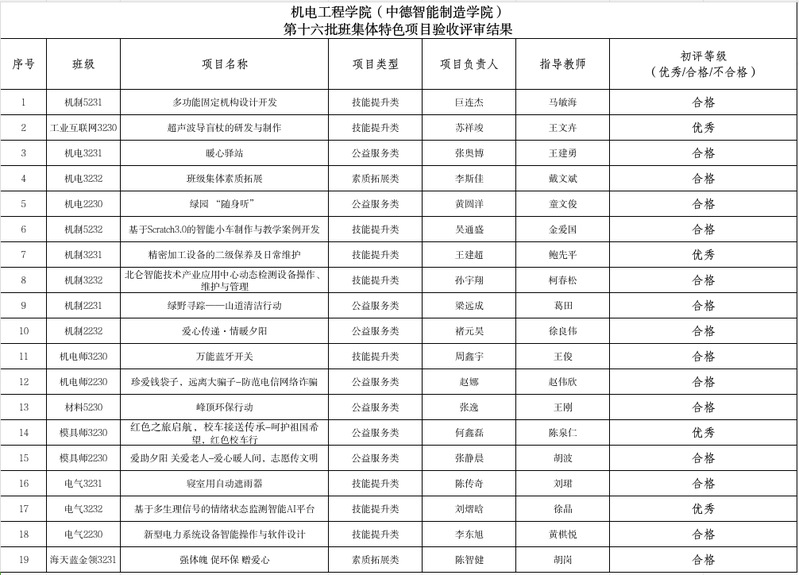 答辩会现场气氛热烈,各项目负责人通过PPT演示、实物展示、数据呈现等方式,系统汇报了项目实施过程及成效。评审专家从项目创新性、专业建设契合度、实施过程真实性、班级同学参与度等维度对19个申报项目进行精准把脉,既充分肯定了《超声波导盲杖的研发与制作》《精密加工设备的二级保养及日常维护》等项目的突破及价值,也就部分项目存在的局限性提出优化建议。经严格评审,19个项目均达到结题标准,其中《超声波导盲杖的研发与制作》等4个项目获评院级优秀项目(具体名单详见附表)。