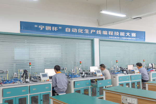 为深化产教融合,强化学生实践能力培养,落实“以赛促学,以赛促练,以赛促创”的教学理念,提升学生职业素养和就业竞争力,5月15日下午,机电工程学院(中德智能制造学院)联合宁波钢铁有限公司顺利举办“宁钢杯”技能竞赛,在校学生和企业员工共同报名参赛,同台竞技。