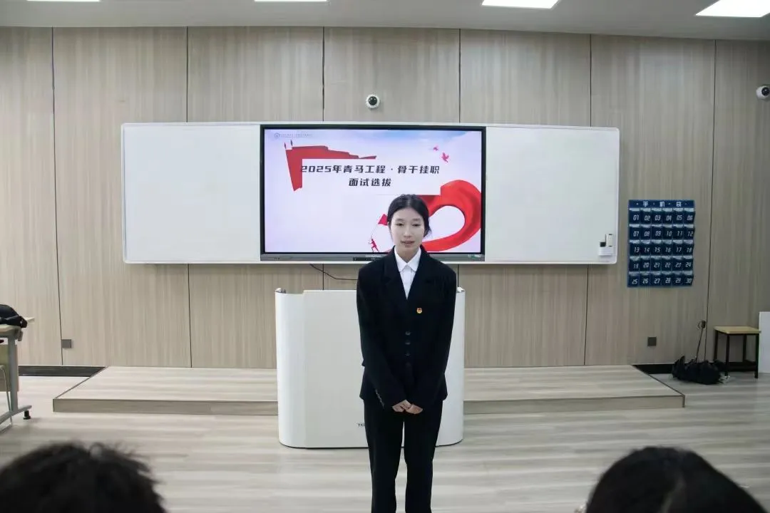 面试环节,同学们进行自我介绍,介绍过程中详细的阐述了自己的优势与特长。有的同学则讲述自己投身志愿服务的经历,用一次次暖心行动诠释乐于助人的精神,并郑重承诺能出色完成青马工作。