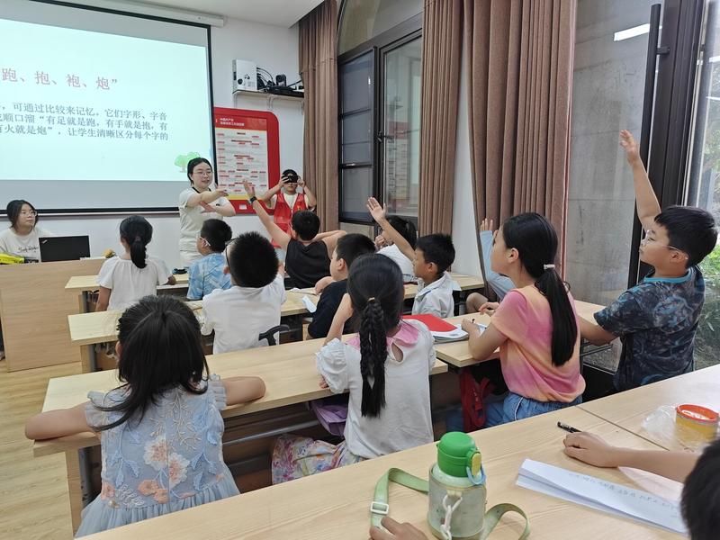 课程伊始,团队成员用“图像复现”等热身游戏作为导入,迅速点燃课堂氛围;而后,团队成员通过“数字快闪”“词语接龙挑战”“联想编码”等互动环节,系统传授艾宾浩斯遗忘曲线、记忆里的“首因效应”与“近因效应”、联想记忆法等记忆妙招。现场可见孩子们踊跃举手参与,欢声笑语不断。