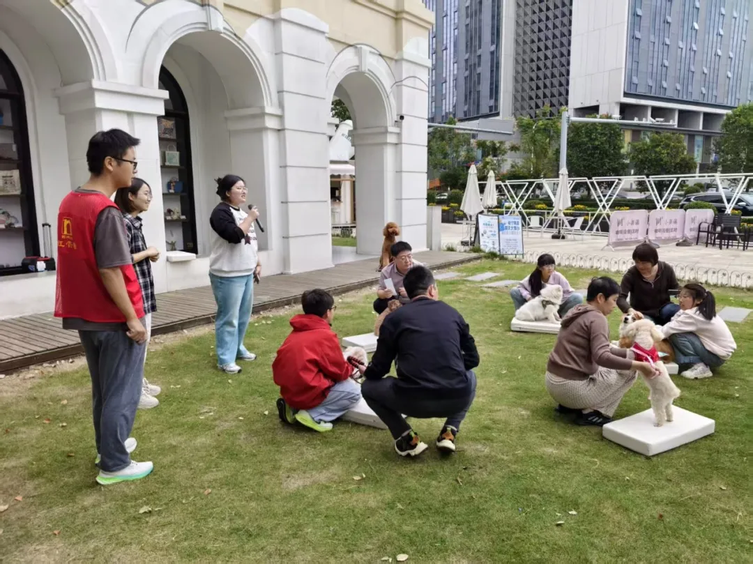宠物趣味运动会开始后,志愿者们化身“萌宠护航员”,各区域都有他们暖心的身影。拔河赛区,他们维持秩序、蹲身给狗狗系安全绳、记录对决,默默守护着狗狗的活力与主人的热情;抢垫子区,他们提前调垫位,看着宠物转圈抢座的萌态,和大家一同欢笑;修毛区,他们帮摆工具、安抚毛孩,见毛孩修剪后精神抖擞,满脸成就感;合影区,他们耐心调宠物姿势、选滤镜,定格人宠温馨同框;补给站的志愿者则备好水和零食,耐心答疑,传递着满满志愿温度。