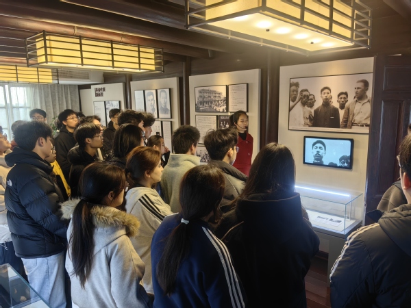 张人亚党章学堂作为全国关心下一代党史国史教育基地,承载着独特的红色记忆。在学堂讲解员的引导下,师生们先后参观了“张人亚与党章的故事”“革命历程”等四大展厅,通过34件珍贵文献复制品、37本历次修订党章实物,直观感受中共首部党章的保存历程。当听到张人亚在白色恐怖时期冒险转移革命文献,其父以衣冠冢秘藏党章的感人事迹时,现场师生深受触动,纷纷驻足凝视展柜中历经岁月洗礼的红色文物,深切体会革命先辈用生命守护信仰的赤胆忠心。