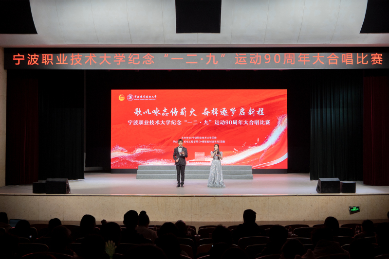 九十载岁月峥嵘,九十年初心如磐。为纪念“一二·九”抗日救亡运动,缅怀革命先烈,激发青年学子的爱国情怀与时代担当,12月4日晚,宁波职业技术大学“歌以咏志传薪火 奋楫逐梦启新程”纪念“一二・九”运动90周年大合唱比赛,在李惠利大剧院深情唱响。活动由校团委主办、机电工程学院(中德智能制造学院)团委承办,校党委副书记马苗金,校团委书记王欣,各学院党委书记、副书记与全场近600名师生共同见证这场用歌声致敬历史、用旋律续写担当的青春盛会。