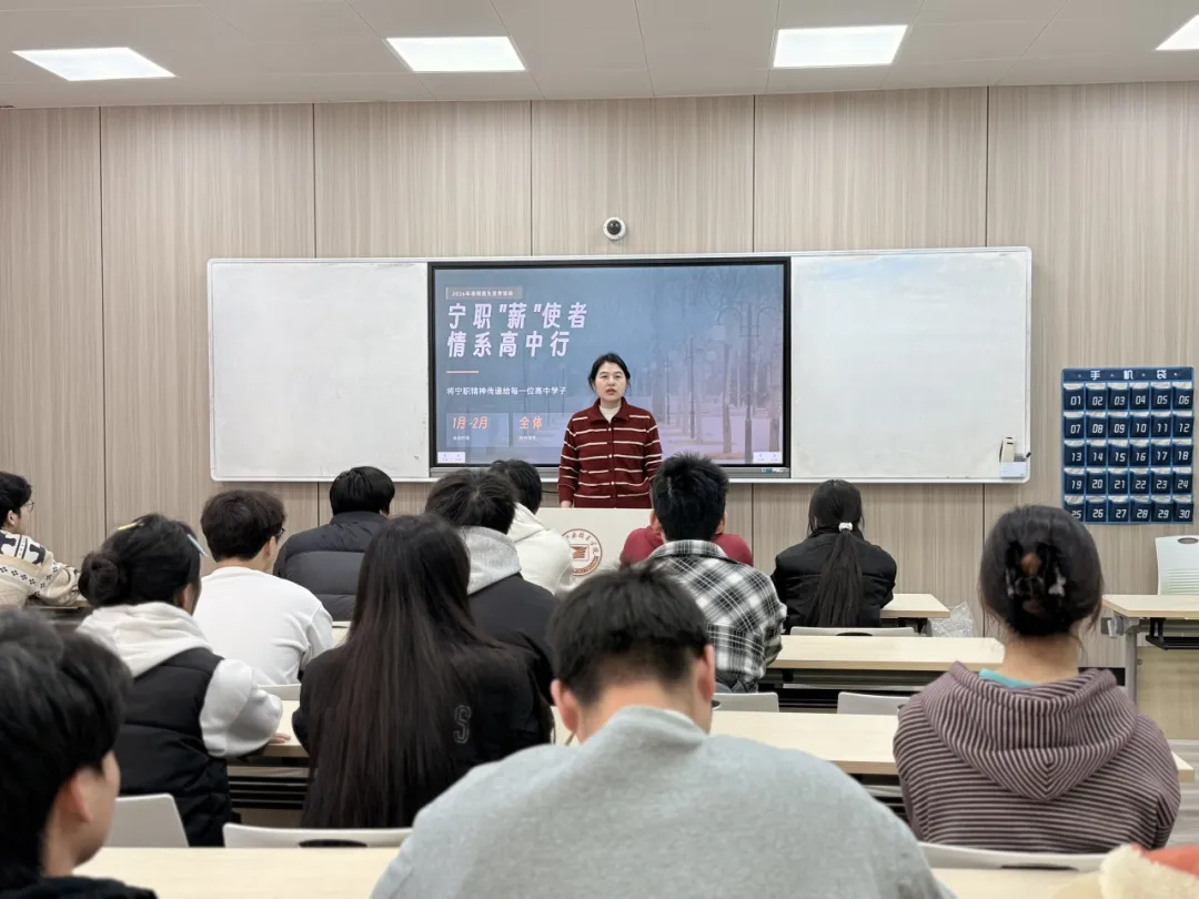 此次寒假招生宣讲是我校招生工作的重要举措,是学院“薪火相传”教育使命的生动实践,更是学子锤炼素养的成长舞台。愿各位宣讲员带着学校信任与荣光,以青春之声传宁职温度,用奋斗行动共谱学校发展新篇!